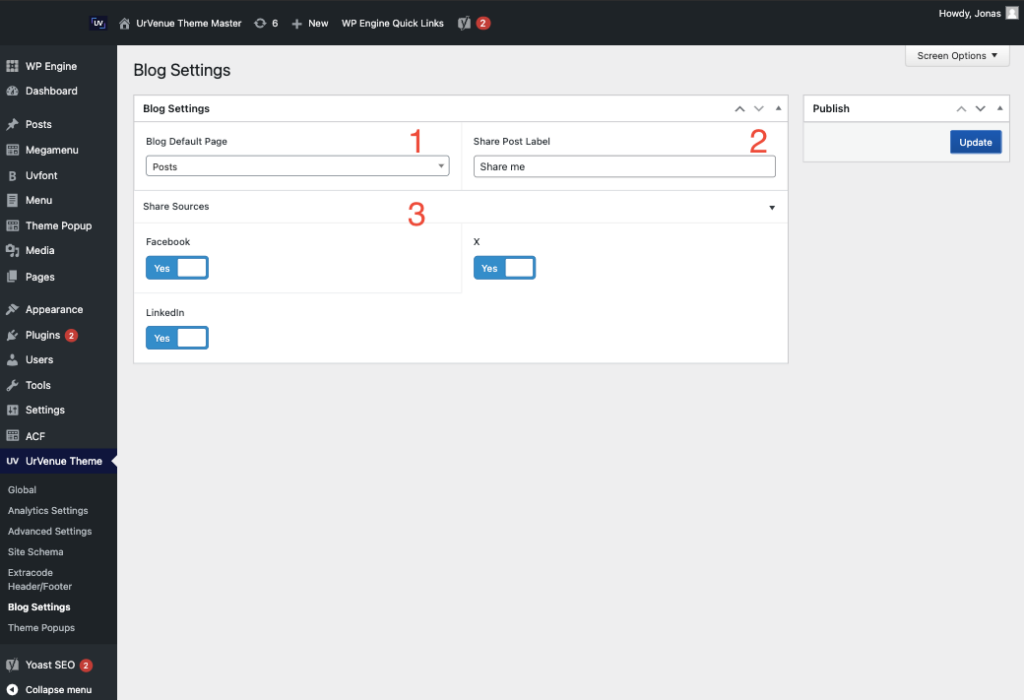 3.- Turn On Socials to share on the Single Post page