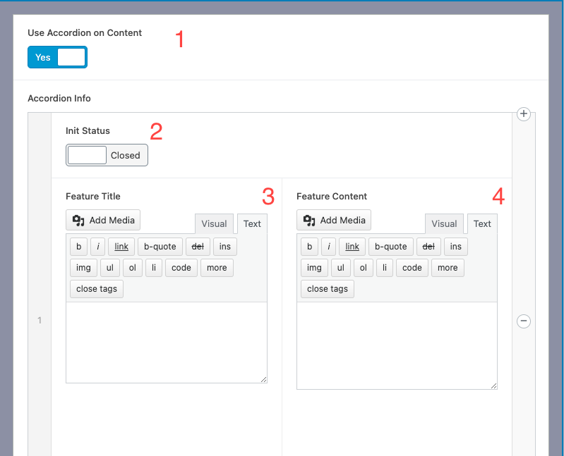 4.- Accordion Content: HTML Editor area