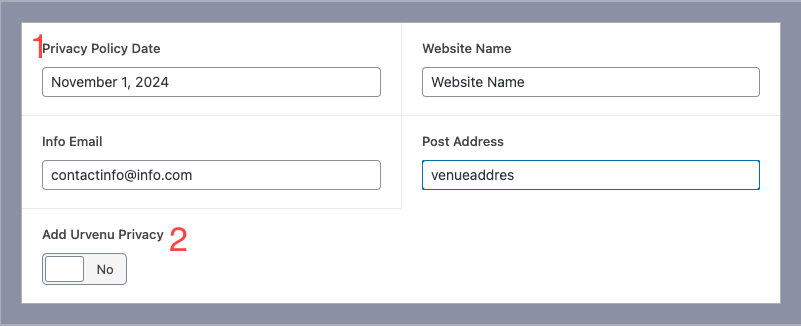 2.-Add Urvenue Privacy: Active if the site has UV inventory