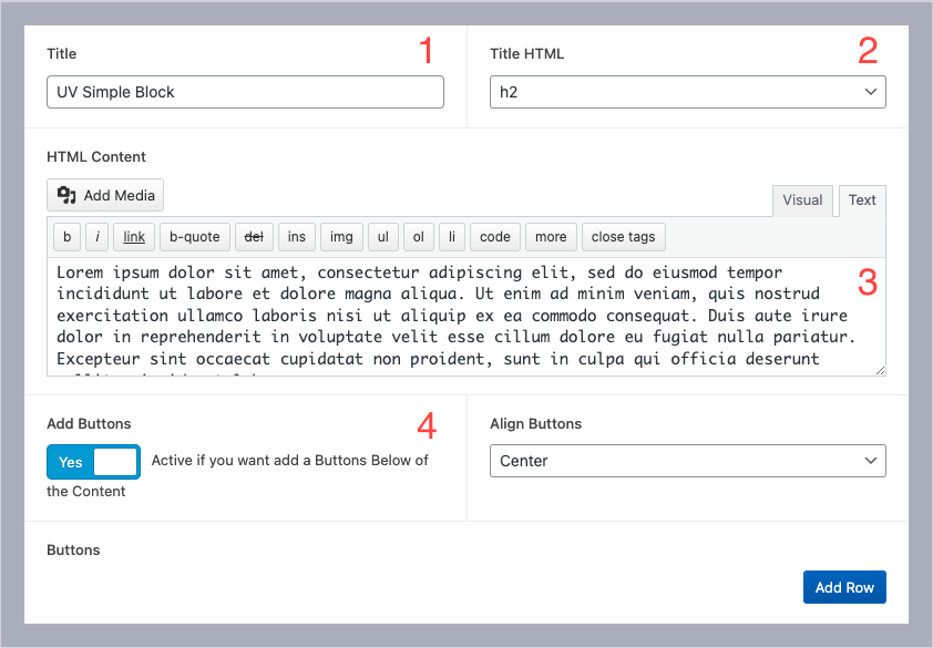 3.- Block Content: Textarea for the block