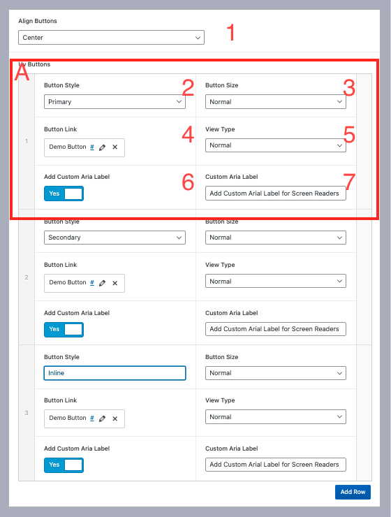 A) Single Button: Single Button details, Click Add Row if we cant add a new button.